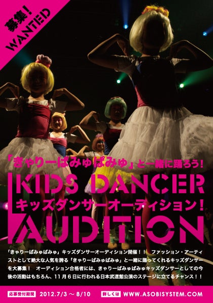 同オーディションはきゃりーぱみゅぱみゅのバックで踊るキッズダンサーを募集するもので、合格するとキッズダンサーとしての今後の活動はもちろん、11月6日に行われる日本武道館公演のステージにもきゃりーと一緒に立つことができる。