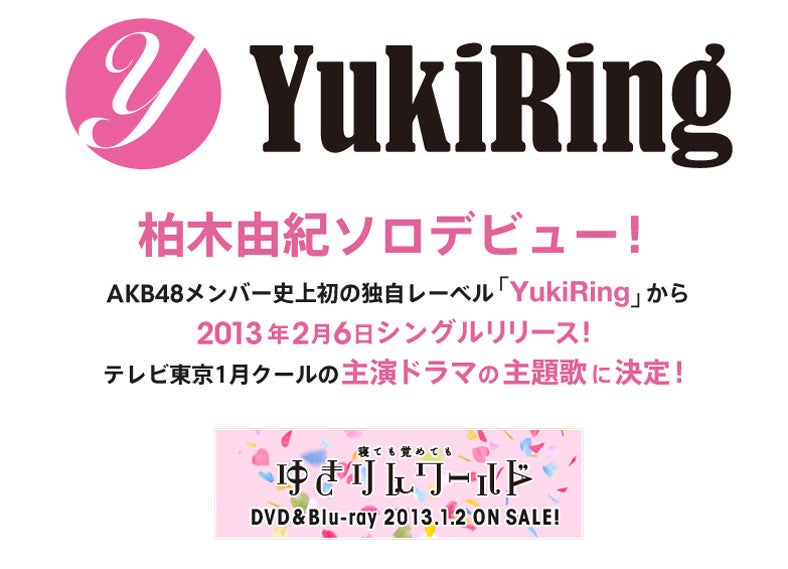 柏木のソロデビューは今年7月に発表された後、11月1日に「YukiRing」というデビューカウントダウンサイトが公開されていた。本日、サイトでも2013年2月6日のデビューが発表された。(モデルプレス)