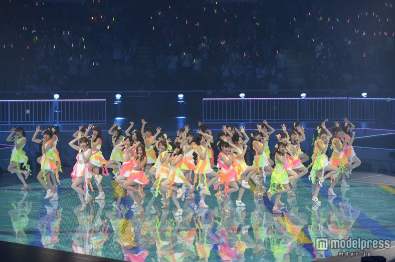 最終公演となる28日には、グループ総勢206人が登場。AKB48、SKE48、NMB48、HKT48各グループのヒット曲などをオンパレードで披露し、アリーナ全面をぶち抜いたステージを360度取り囲んだ1万1000人のファンを熱狂の渦に巻き込んだ。さらにライブ終盤には、今夏の5大ドームツアー、メンバー人事がサプライズ発表され、北原里英のSKE48チームSの兼任、横山由依のNMB48チームNの兼任などが解かれる中、SNH48宮澤佐江のAKB48チームAの兼任、JKT48高城亜樹のAKB48チームBの兼任、指原莉乃のHKT48の劇場支配人就任などが決まった。(モデルプレス)