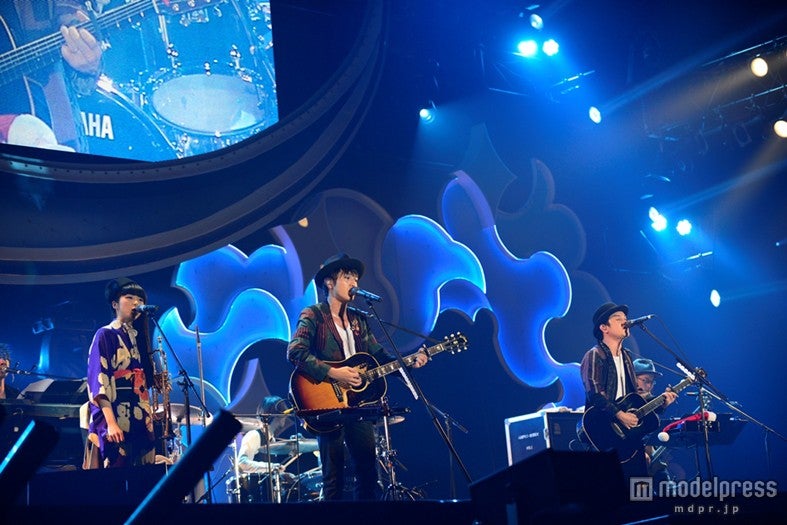 続いて「夏色」では、北川がトナカイのかぶり物を、岩沢がサンタクロースの帽子をかぶり登場し、ダンサーと共にコミカルなパフォーマンスを繰り広げた。