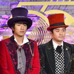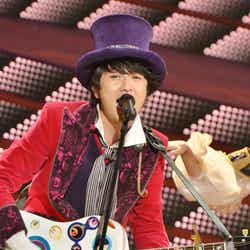 シルクハットにロングジャケットを合わせたスタイルで登場したゆず。「LAND」には、「おもしろいものが詰まっている」という意味を込めたといい、曲作りの際には「震災以降、どんなメッセージを込めていくかと考えている」と制作秘話を明かした。
