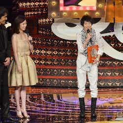 さらに、「一言お願いします」といい、「5年ぶりにマイクフォローしていいですか?」とHIROにコメントを求める場面も。会場から大きな歓声が上がる中、HIROは上戸にマイクフォローされ、照れながら「僕らが選ばれて本当に光栄です」と受賞の喜びを語った。
