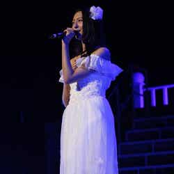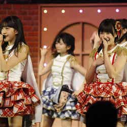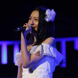 アンコールに差し掛かると、タキシード姿の指原が登場。会場に大きなどよめきが起こる中、3rdシングルのタイトルである「桜、みんなで食べた」、そして同曲の選抜メンバーを発表。初選抜に3期研究生の小学6年生コンビ、田中美久・矢吹奈子の“なこみく”が選出されると、会場からは驚きの声が。さらに、2ndシングルでは選抜入り出来なかった中西智代梨の名前も呼び上げられ、中西は大粒の涙をこぼしながら、ファンの温かい声援に応えた。その後、沸き起こる歓声の中、同曲を初披露。センターポジションには、2ndシングル「メロンジュース」と同じく、田島芽瑠と朝長美桜が位置していた。披露後指原は、「みなさん、神曲ですかー!?」と呼びかけ、会場を盛り上げた。