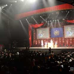 また、初だという学校の体育館風に飾り付けられた会場は、紅白幕ならぬ、桃白幕で覆われていた。そんな卒業式イベントもあって「スーパー生徒会長」に扮したきゃりーから、ファンに卒業証書が授与される一幕も。証書を受け取ったひとりの女子高生は、ミュージカル女優になることが夢。彼女から「舞台で緊張しない方法」を問われたきゃりーは、「人間じゃなくてみんなをじゃがいもだと思えば、本当に緊張しなくなります」とアドバイスし、観客を笑わせた。学生しかいないフレッシュなイベントにきゃりーは、「今日は楽しい!」と漏らすなど、笑顔と歓声が絶えないイベントとなった。(モデルプレス)