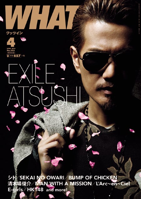 先日発売されたシングル「青い龍」から間髪入れずに2ndアルバム「Music」を完成させたATSUSHIが、14日発売の雑誌「WHAT’s IN?」4月号表紙&巻頭に登場。EXILE第一章のセルフ・カバー、清木場とのコラボレーションを含めて、その経緯を語った。