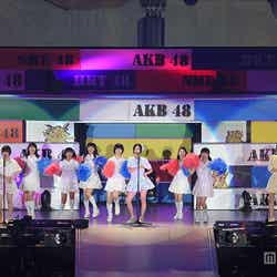 メンバーは全員、体操服姿で登場。客席の協力も得ての大玉転がしや、メンバーがステージ上で組体操をしたりと、「大運動会」という名の公演に会場は大盛り上がり。1人だけブルマ姿で登場となった指原は周りのメンバーから突っ込まれ、「みんなブルマって聞いてたのに…」と恥ずかしがる様子を見せた。