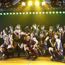横山由依キャプテンのもと、SKE48の松井、NMB48の山本、HKT48の兒玉遥と、各グループを代表するチームのセンターを担うメンバーが集まった新生横山チームK。メンバーそれぞれが魅力全開で披露したパフォーマンスは、1曲目「RESET」から圧倒的な迫力を見せた。「ウッホウッホホ」では、ゴリラ役をキャプテン横山が担当。ゴリラの動画を沢山見て学んだというだけあって、造形模写は完璧。あえて静止で魅せる横山ゴリラも必見だ。