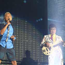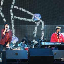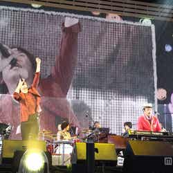 6組目は、ゆず。壮大なナンバー「栄光の架橋」で観客の心をがっちりと掴むと、2曲目には「夏色」で元気いっぱいのパフォーマンス。彼らの魅力が詰まったステージで、会場を盛り上げた。その後は、斉藤和義が「やさしくなりたい」「歩いて帰ろう」で、観客を魅了。続いて、ウカスカジーが登場すると、会場からは大きな歓声が上がった。ウカスカジーは、「勝利の笑みを 君と」「mi-chi」の2曲を披露。日本サッカー協会公認の日本代表公式応援曲「勝利の笑みを 君と」では、会場一体のパフォーマンス。圧倒的な存在感を見せつけ、ステージを後にした。