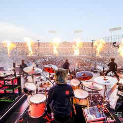 同イベントは、5月31日に56年の歴史に幕を閉じる国立競技場のファイナルウィークを飾る最後の音楽イベント。最終日となるこの日は、「Japan to the World」というコンセプトの元、L‘Arc-en-Ciel、SEKAI NO OWARI、Perfume、MAN WITH A MISSIONら4組のアーティストが集結。オープニングでは、28日に行われたDAY1と同じく、スクリーンのカウントダウンが0になると聖火台に炎が灯り、イベントの幕開けを盛大に知らせた。この日のオープニングを飾ったのは、オオカミバンドMAN WITH A MISSION。1曲目には「evills fall」を披露し、スピード感のあるナンバーで一気に会場を盛り上げた。その後は、「Get Off of My Way」「higher」「Emotions」などの計6曲をパフォーマンス。唯一無二の存在感で、観客の心をがっちりと掴んだ。