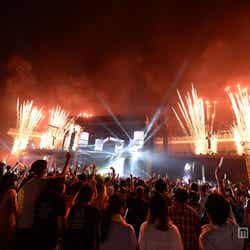 続いて、Perfumeが登場。「edge(ASIA ver)」でスタートしたライブは、「Spring of Life(国立ver)」「Magic of Love(Album-mix)」「チョコレイト・ディスコ(2012-Mix)」「ポリリズム」とヒット曲のオンパレード。一糸乱れぬダンスとキュートな歌声で、世界で活躍する実力を見せつけた。大トリは、L‘Arc-en-Ciel。「CHASE」「XXX」「BLESS」など誰もが知る名曲を次々と披露する怒涛のライブを展開。さらには、代表曲ともいえる「HONEY」を歌唱し、hydeの高音で観客を圧倒。ライブラストは「MY HEART DRAWS A DREAM」。美しいメロディーが国立に響き渡ると、空には虹色のバルーンが。壮大なステージとカリスマ性で、大舞台のラストを見事に飾った。