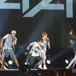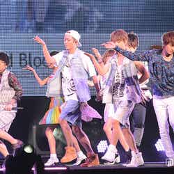 1曲目はアップテンポの「SHOW TIME」からスタート。7人の圧倒的なダンスパフォーマンスで会場の視線を釘付けにし、ヒートアップさせた。続けて「恋音と雨空」を披露すると、一転してしっとりとした歌声で魅せた。2曲を終えると、会場を見回し浦田直也が「元気ですか」と呼びかけ。宇野実彩子も「武道館はみんなの顔がよく見えますね。デビュー1周年でここでやらせていただいたのを思い出します」と笑顔に。西島隆弘も「反応してくれてありがとうございます」とファンからの熱い声援に応えた。