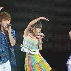 再び「Wake up!」で会場を盛り上げると、最後には同イベントのキャンペーンソングでもある「LOVE」を披露。たくさんのハートが舞い降りてくる演出の中で歌声を響かせた。