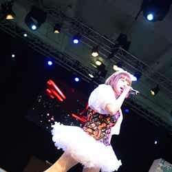 今年で6回目の開催となる同イベントは、日本のゲームやアニメ、ファッションや音楽、さらには日本食などあらゆるJAPANカルチャーを一度に楽しめる、イギリス最大級かつ唯一の総合展示イベント。ファッション誌「mer」「SEDA」をはじめとする原宿シーンのアイコンとして活躍するやのは、日本の“KAWAII”コンテンツを集めた「MOSHI MOSHI NIPPON presents HYPER KAWAii!!」もしもしステージに登場。ホワイトのチュチュにチェリー柄のコルセットを合わせたポップなコーディネートで原宿の“KAWAII”をアピール。「Shape My Story」「オール・オーヴァー」の2曲を歌唱し、キュートな歌声を会場中に響き渡らせた。