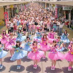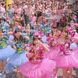 今回のMVは、商店街で約550人のエキストラとダンス。撮影した学校の周りには近所の人も駆けつけ、「麻友ちゃん1位おめでとう!」というプラカードを見せてくれた女の子がいたり、渡辺は子供たちとじゃんけんをするなど温かい雰囲気の中、撮影が行われた。久しぶりにAKB48に帰ってきた宮澤佐江は相変わらずの元気さで現場の空気を和ませ、生駒里奈は町工場の職人と一緒にダンスをしていたが工場内の控室で待っていた時に突然停電になり、とてもびっくりしたよう。さらに、川栄李奈も元気に撮影に参加していた。(モデルプレス)