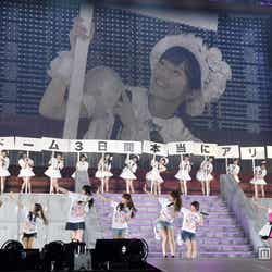 今年で3年連続となる同所でのコンサート。最終日の本日は前日に引き続きSKE48、NMB48、HKT48を加えたAKB48全グループ総勢300名が出演。3日間を通して12万6000人のファンを熱狂させた。