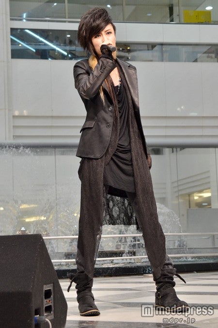 25日、都内にて行われた自身のメジャーデビュー記念イベントで、ライブパフォーマンスを行ったAKIRA。変形トップスとパンツにジャケットを合わせた全身黒のコーディネイト衣装でクールな魅力を放ち登場した。