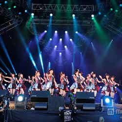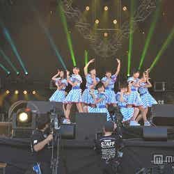 そしてNMB48の登場。「ナギイチ」「オーマイ ガー!」「カモネギックス (3周年/dance mix ver)」など、シングルナンバーを中心に披露。途中で滋賀県出身のメンバー、上西恵、近藤里奈、内木志が紹介され「地元で(ライブを)やるのは全然違う!」と嬉しそうに話すと、客席はさらに盛り上がった。