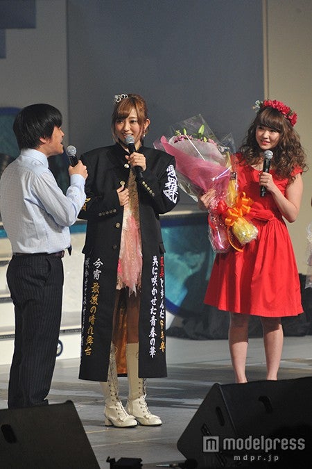 さらに合間のMCでは、急遽予定が空いたというバカリズムが駆けつけ、卒業後の初仕事として、ライブ後に放送されるバカリズムのラジオ出演を打診。菊地はこれを快諾した。また、卒業祝いとして背中に“菊地亜美”と大きく刺繍の入った学ランをプレゼントされた菊地は、「タバコ臭い!これ着てだいぶくつろいだでしょ」とツッコミ。バラエティで活躍する菊地らしさを随所に見せ、会場は笑いが絶えなかった。菊地亜美、幸せそうな表情