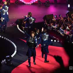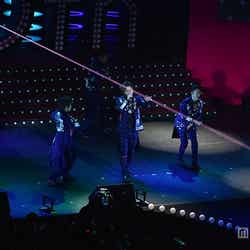 続いて登場したのは、GENERATIONS。アップテンポな「HOT SHOT」で勢いをつけると、2曲目にはハートフルなナンバー「Love You More」で会場を温かい雰囲気に。ラストには、「Into You」を伸びやかに歌い上げ、3組目のE-girlsにバトンを渡した。