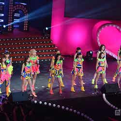 カラフルな衣装で登場したE-girlsは、1曲目に「Follow Me」をパフォーマンス。キュートなステージで観客の視線を釘付けにすると、続けて「Diamond Only」「Highschool love」を披露。ステージ全体を使ったパワフルなパフォーマンスに会場のボルテージはさらに上昇。