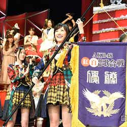 トリを飾るのは、両チームキャプテンによる直接対決。紅組・松井珠理奈は「カモネギックス」をダンスとアクションを織り交ぜた激しいパフォーマンスを展開。一方の白組・渡辺麻友は白の紙ふぶきを身にまといながら「右肩」をしっとり歌唱し、「この1年の感謝の気持ちを込めて歌いました」と挨拶。対照的なキャプテン対決が、今年のAKB紅白を締めくくった。そして、いよいよ結果発表。映画館と会場のファンに支持された紅組が1歩リードし、白組キャプテンの渡辺が意気消沈。しかし、最後には6対4の僅差で白組が紅組に大逆転する結果に。昨年に続いて白組の勝ちとなったが、渡辺(昨年は紅組)にとっては初の優勝となり、キャプテンの最後の仕事として優勝旗を受け取り満面の笑みを浮かべ「今年も負けるんだなと思っていたのですが、まさかの最後の最後に逆転ができて嬉しいです」と喜んだ。(modelpress編集部)
