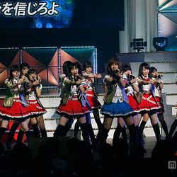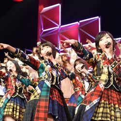 そして終盤クライマックスには、山本彩(紅)、高橋みなみ(白)による、バンド演奏を従えてのロックディーバ対決が実現。互いに一歩も譲らない熱唱に会場が酔いしれた。