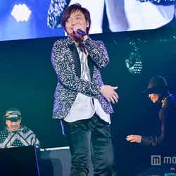 また、「こんな大きなステージで15年前は立てると思わなかったです。改めて幸せものだなと思いました」と心境を吐露。「人生辛いことがあると思います。15年やっていて辛いこともいっぱいあったし、苦しい時期もありました。だからこそ人生楽しんだと教えてもらいました」と振り返り、「そんなことにも負けずに前を向いてほしいという想いを込めた曲です」と紹介してから最新シングル「Dance In The Rain」を披露。さらには、2005年発売の楽曲「you」を歌い、「久しぶりにライブで歌ったのでちょいちょい間違えてしまいました。お許しください」とお茶目にコメント。終始大歓声を浴びながら、全12曲を迫力のある歌声で熱唱した。