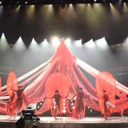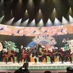 ステージは白組司会の嵐と紅組司会の吉高由里子が進行。吉高は嵐のフォローを受けつつ、緊張しながらも一生懸命取り組む姿が印象的だった。ほか、「新・衣装の女王」水森かおりの今年の衣装“人間ドレス”などがお披露目。合わせて、紅白に出演するSMAP、V6、TOKIOらの記者会見も実施され、各々意気込みを語った。