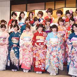 東京・神田明神にて成人式記念撮影会を行ったAKB48グループの新成人メンバー(後列左から)大段舞依、岸野里香、井尻晏菜、上枝恵美加、山岸奈津美、河野早紀、山田麻莉奈、太田奈緒(中列左から)小嶋菜月、斉藤真木子、坂口理子、岩立沙穂、山内鈴蘭、小笠原茉由、加藤るみ(前列左から)小谷里歩、岩佐美咲、武藤十夢、川栄李奈、多田愛佳、岩永亞美、上西恵