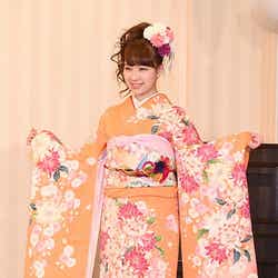 AKB48の川栄李奈らが12日、“アキバの守護神”として知られる東京・神田明神で成人式記念撮影会を行った。
