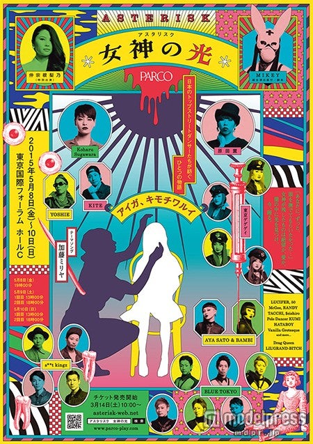同舞台は、日本のトップストリートダンサーが一堂に会し、ひとつのストーリーを紡ぐ進化系エンターテインメント舞台。ダンサー・MIKEYの総合演出振付&脚本にもと、同じくダンサー・Koharu Sugawara、多彩な舞台表現者・原田薫、マツコ・デラックスら数多くの著名人ファンを抱えるs**t kingz(シットキングス)など、注目のストリートダンサーたちが出演する。5月8日から東京・国際フォーラム(ホールC)で公演。なお、楽曲の一部は、公開がスタートしたばかりのプロモーションビデオ『女神の光』で聴くことができる。(modelpress編集部)