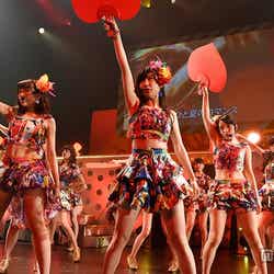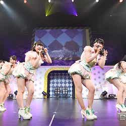 その後はユニットコーナーに入り、「蕾たち」、「ふしだらな夏」、「細雪リグレット」、「ホワイトデーには…」などと、春から夏へ、そして冬へと季節をモチーフにしたセットリストで一気に中盤まで駆け抜けた。途中MCでは、小嶋真子と大和田南那のゆるゆるトークコーナーがあり、天然発言がさく裂した小嶋を後輩の大和田が突っ込む場面も。「シリーズ化していきたい!」と小嶋は笑顔で意気込んだ。