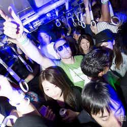 そして、蛍光灯が消えるとノリの良いダンスミュージックが響き渡り、参加者のテンションは一気に最高潮に。色とりどりのライティングも相まって、車内は一瞬でダンスフロアと化した。さらに、DJブースやダンサーのいる車両は入場規制が入るなど、車内は大盛り上がりとなった。