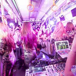 その他、日本国内にとどまらず世界各国のフェスへの出演などワールドワイドに活躍するGOGOダンサー集団CYBERJAPAN DANCERSも出演。タイトなボディスーツで艶やかに舞い、車内を彩った。