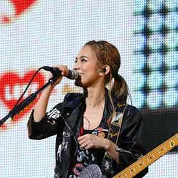 次に、ガールズバンド「SCANDAL」が大きな歓声が沸き起こる中で披露した「夜明けの流星群」では、会場がひとつに。曲の間のトークセッションで、ボーカル・ギター担当のHARUNAは「この『LOVE in Action Meeting(LIVE)』に初めて出られてとても嬉しいです。今日歌った中で、このイベントと同じタイトルの『love in action』という曲があります。私たちが伝えたいことは、全部曲の中に入れました!」と笑顔で語ると、会場は更に一体感を増した。May J.「周りの人をもっと笑顔にしてほしい」