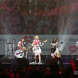 続いて全員が読者モデルの活動ガールズバンド「Silent Siren」が赤と白を基調とした「LOVE in Action」のイメージカラーの衣装で登場。新曲の「ハピマリ」や「ぐるぐるワンダーランド」などを披露するなか、曲の合間のMCトークではベース担当のあいにゃん(山内あいな)が「先日、この『LOVE in Aciton』をきっかけに献血に行きました。最初は少し怖いと思っていたけれど、献血ルームのスタッフや看護師さんが親切なだけでなく、献血ルームもきれいなカフェの様でイメージが変わりました!献血に向けて最初の一歩を踏み出すことは緊張すると思うけれど、終わった後にやってよかったと思うはずです。ここにいる人みんなが第一歩を踏み出して、愛の行動をしてほしいと思います!」と、自身の献血の体験を観客に向けて真剣な眼で語った。SCANDAL「私たちが伝えたいことは、全部曲の中に」