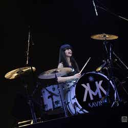 「盛り上がってるかー!」の掛け声でさらに観客を煽ると、「キケンなふたり」「Hunger×Anger」で力強い歌声と鮮やかなスティック捌きでドラムを打ち鳴らし、観客を圧倒。ドラムソロでは天を仰ぎながら会場の盛り上がりを噛みしめるように叩いたり、コール&レスポンスを楽しんだりと、溢れる感情をぶつけるようなパフォーマンス。