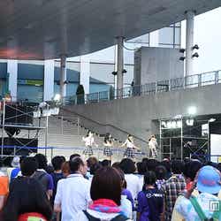 日が落ちてもライブは続く。湾岸スタジオの屋上に設けられたSKY STAGEでは、遠目に観覧車やフジテレビ本社屋が見渡せ、抜群のロケーションのなかでライブが行われた。初日は篠崎愛、アイドリング!!!、prediaなどが、夜空に歌声を響かせた。「Re:ガールズ」に新メンバーが加入