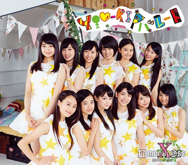 21日、シングル「YOU-kIのパレード」(9月23日発売)のジャケット写真が公開された。同作が、初週のランキングベスト10以内、または初週の販売枚数が10,000枚に満たなかった場合、年内にてアーティスト活動を無期限停止するX21。解禁されたジャケットでは、チア風の白地に星をあしらったパターンと、カラフルなテニスウェアのような姿を披露している。そして、タイトルのロゴはCD選抜メンバー12名が全員で考え、当初はコンペで1人を採用しようとしたが、それぞれが個性的だったため、皆の想いを込めて合体させた。