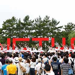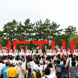 朝から雨というあいにくの天候にも関わらず1000人の観客が集結。イベント開始前には奇跡的に雨も上がり、メンバーは海にほど近い信濃川の河口から船に乗ってサプライズ登場した。