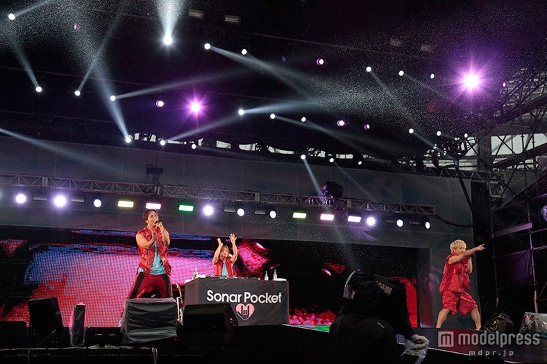 本編のトップバッターはE-girls。ユニットステージ、Amiのソロステージも交えた堂々10曲の元気なステージを繰り広げた。続くソナーポケットは「365日のラブストーリー」などを全力披露。Da-iCEもアッパーチューン「エビバディ」で会場に夏の空気を吹き込んだ。Acid Black Cherryはヒット曲「イエス」をはじめ、ライブ定番曲で構成された豪華セットリスト。ファンが雨をも吹き飛ばすヘッドバンギングでステージを後押しする。SUPER☆GiRLSも元気いっぱい「MAX!乙女心」などをパフォーマンス。AAAは雨のスタジアムにぴったりの「恋音と雨空」をしっとりと聞かせた。