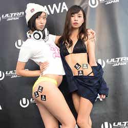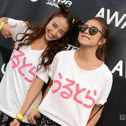 人気ギャルモデルの今井華&大橋リナの仲良しコンビは、この日のために「図工が得意」という今井が作ったお揃いの“うるとら”Tシャツで参戦。「楽しみすぎて、高ぶっちゃって。昨日あんまり寝れてないっす!」と興奮気味に話す今井に、楽しみにしているアーティストを尋ねると、「ここにいる皆がハッピーになれば、それでこっちもバイブスが上がってハッピーです(笑)!」と笑顔全開でコメントしてくれた。