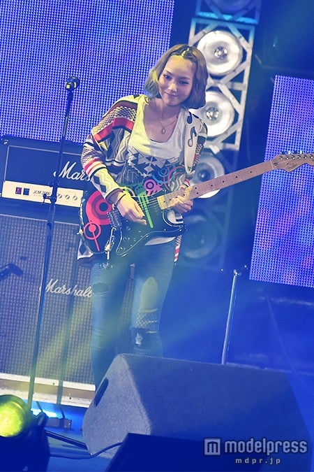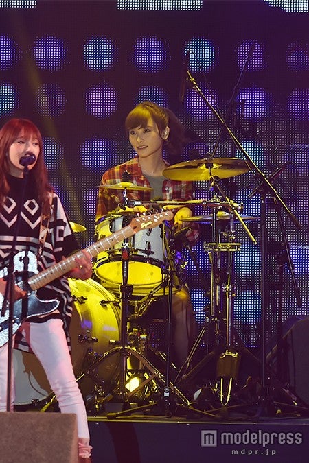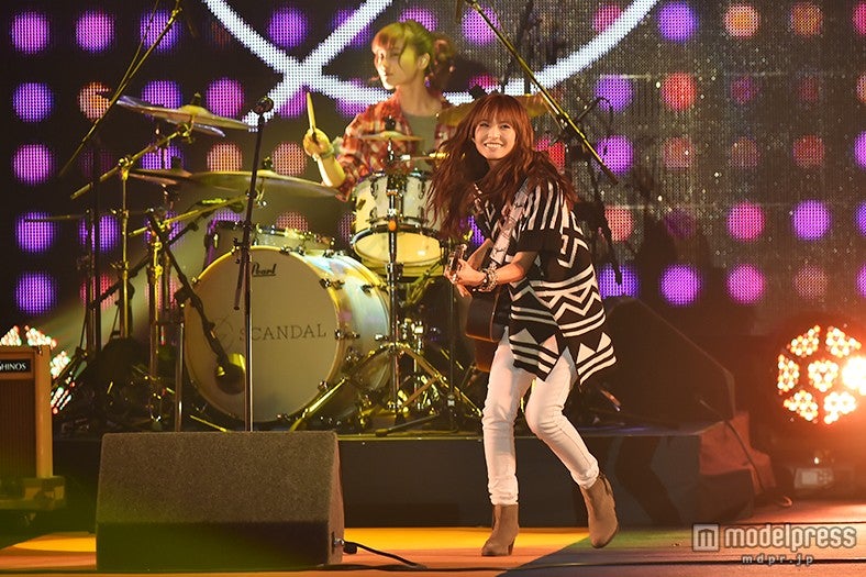 世界に活躍の場を広げる4人組ガールズ・バンドのSCANDALが、迫力のパフォーマンスで沸かせた。