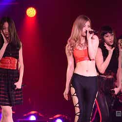 8月12日にデビューを果たし、話題の大型新人として注目を集めているlol。黒と赤を基調としたお馴染みのクール&セクシーな衣装で登場し、1曲目「pop that!!」を披露。中盤ではランウェイ先端に移動し、メンバーがキレキレのソロダンスをした。