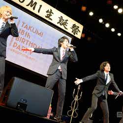 ステージに到着すると、イメージカラーの青で埋め尽くされた会場に「キレイだね!」と喜びの声を上げるTAKUMI。MASAKIを除くメンバーと過ごした18歳になった瞬間のVTRも上映され、わちゃわちゃとトークを繰り広げた後、ノリノリな新曲「俺たちルーキーズ」をパフォーマンス。TAKUMIが「今日は本当に来てくれてありがとうございます!」と曲間のセリフを変えてつぶやくと、黄色い歓声が響き渡った。