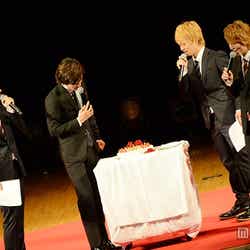 歌唱後にはバースデーケーキが運び込まれ、ステージ上に設置されたロウソク風の照明を消して回り、RYUJIから“あーん”のプレゼント。口いっぱいに頬張り、「上手い!」と笑顔を見せた。