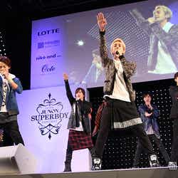 同日のイベントでは、年少組の12名が「Dreaming Day」を、年長組の12名が「いつかきっと」をそれぞれのデビュー候補曲としてライブで初披露。その後、24名全員が揃ってステージで挨拶し、年長組代表の西川拓毅(にしかわ・ひろき)さんは、「僕たちは残念ながらコンテストのファイナリストに入ることは出来ませんでした。でもジュノンに載せて頂いた時からたくさんの読者やファンの皆さん、友人たちに応援して頂いて、とても嬉しかったし、どうしても皆さんの前に出てお礼を言いたかったんです」と思いを告白。「でも途中で落ちてしまったことでまだその人たちに恩返しが出来ていなかった中、今回こういう形でチャンスをもう一度頂きました。先ずは歌と踊りをチームで見せていくので、絶対に良いものを見せるので、もう少しだけ応援してもらえたら嬉しいです」と呼びかけた。