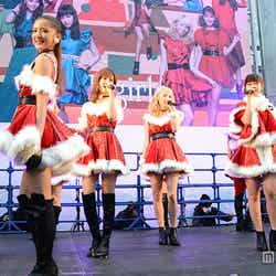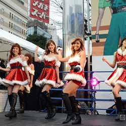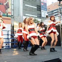 イベント開始直前、アナウンスが流れると通行人は次々に足を止め、すぐにステージ前は人だかりに。ミニスカートやウエストをチラ見せするなど、それぞれ違ったキュートなサンタ衣装に身を包んだメンバーがステージに姿を現すと、集まった3000人の観客は「可愛い~!」と熱狂。
