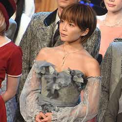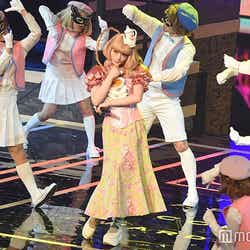 パフスリーブのブラウス×ロングスカートで現れたきゃりーぱみゅぱみゅは、頭にポットを乗せた衝撃の衣装で登場。さらにブラウスの胸元に施されたティーカップに注がれた瞬間のお茶も表現しており、「今回はお茶がテーマになっていまして、頭からお茶が注がれています!ティースプーンですごくメルヘンになっています」とにっこりアピールした。ステージでは今年3月にリリースした「もんだいガール」を披露。きゃりーらしい個性溢れる衣装とキュートな歌声で、会場を魅了した。西内まりや「帰ってこれました」1年ぶり「レコ大」ステージで感謝の弾き語り