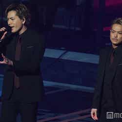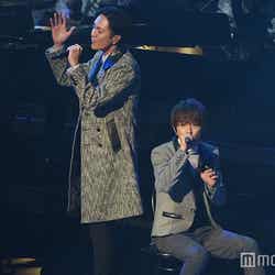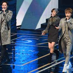 今年9月にデビュー10周年を迎えたAAA。総合司会の仲間由紀恵と安住紳一郎TBSアナウンサーから祝福されるとメンバーの西島隆弘は「アリーナツアーや野外ライブ、初のアジアツアーなどライブ尽くしでした」と振り返った。AAAは10年前の2005年には最優秀新人賞を受賞し、今年9月16日に50枚目のシングルとしてリリースした「愛してるのに、愛せない」で2010年より6年連続の6回目の優秀作品賞を受賞した。「愛してるのに、愛せない」は切なすぎるミディアムチューン。しっとりと歌声を響かせつつも息ぴったりのパフォーマンスで“10周年の絆”を見せていた。